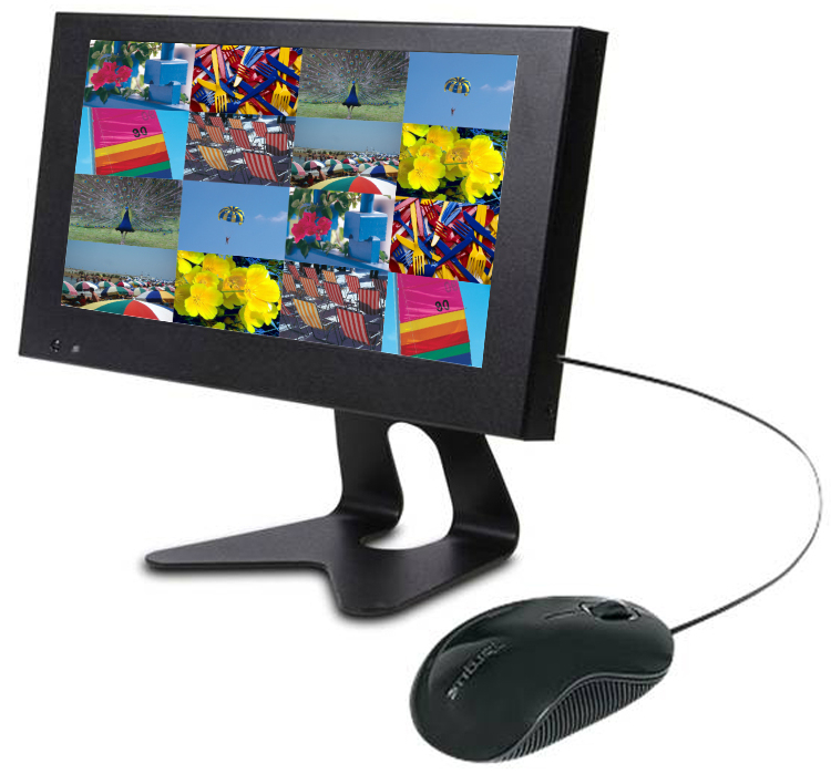 12.1" TFT LCD IP Colour LED Backlit Monitor, IP, HDMI, DVI, VGA, Audio In R/L and out via Speakers & Earphone, e-SATA Port, Easy to set up using the mouse. No PC required. Up to 16 camera images displayed. Options: Glass front or Touchscreen and POE Version