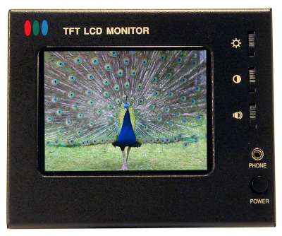 4" TFT LCD Colour Monitor, Digital LED Back Light Panel, Metal Case. 2 x Composite video inputs, Video output, PAL & NTSC Auto, Low Current, 4:3 Aspect Ratio. With Screen protector. Available in other sizes.